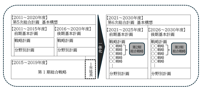 なお、この総合戦略は「総合計画」における人口減少対策に、分野横断的に取り組む「まちづくり戦略」と目的を同じとすることから、「第3期豊橋市まち・ひと・しごと創生総合戦略」と一体的に策定しています。