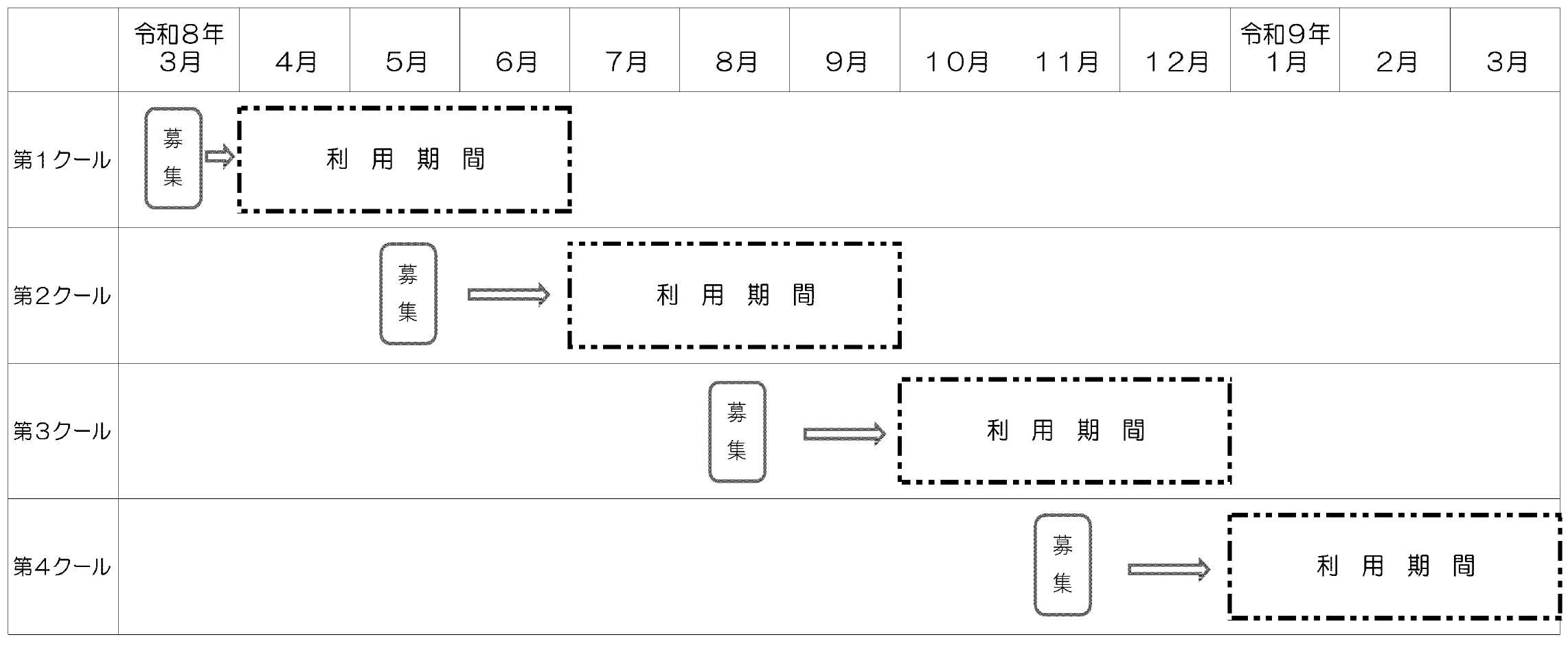 1年間を4クールに分けて実施し、各クールごとに予約を受け付けます。
