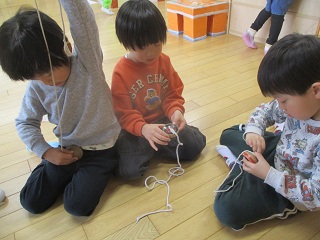 こまに挑戦!!うまく巻けるかな??