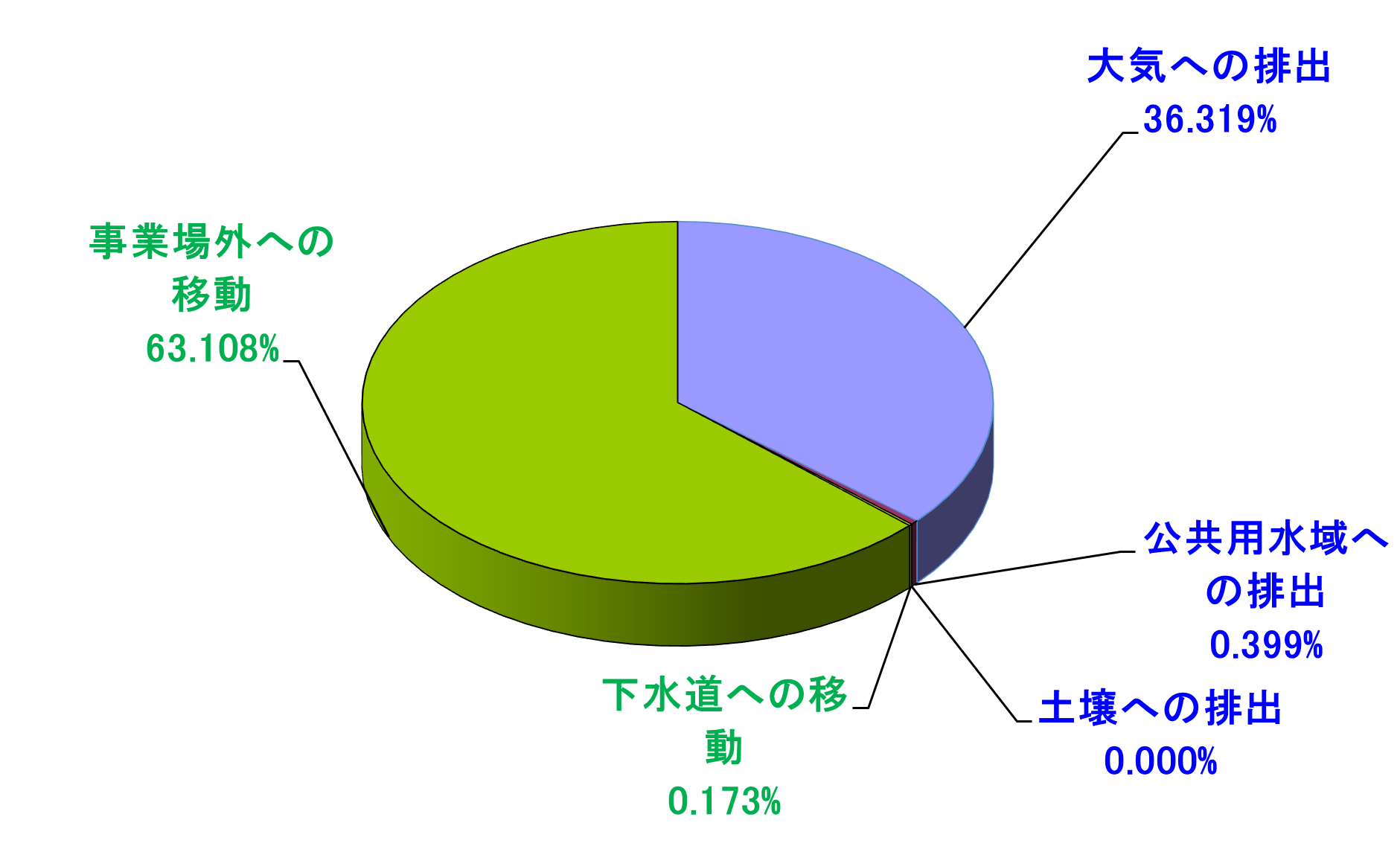 届出排出量は、約1,441tで、大気への排出が約1,425t、公共用水域への排出が約16t、土壌への排出及び埋め立て処分の届出はありませんでした。